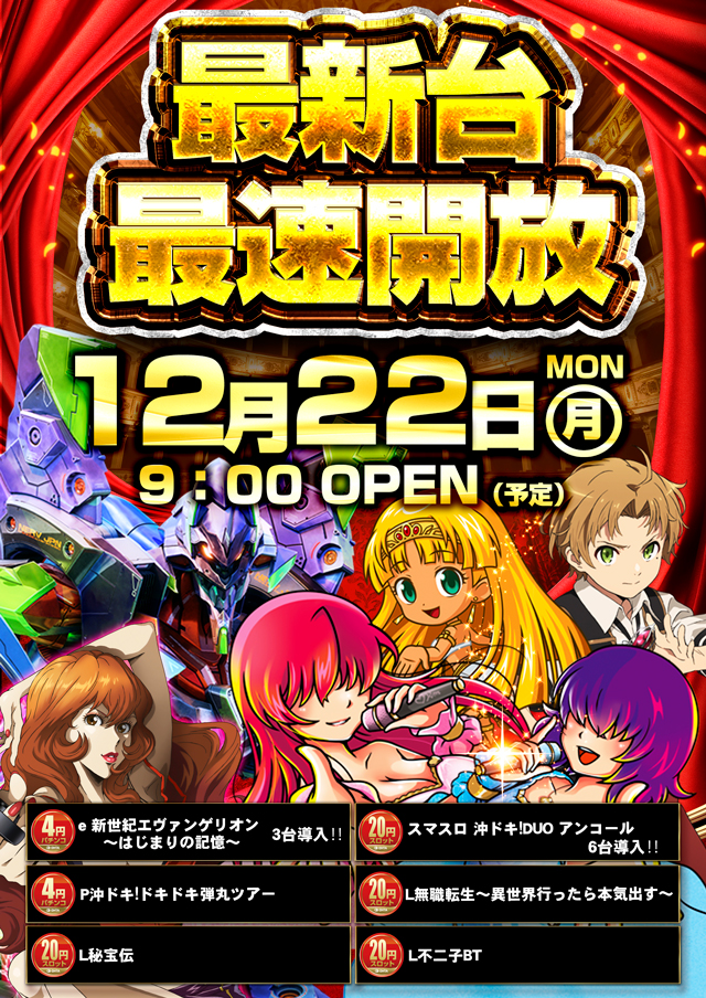 8月23日(水)☆新台入替☆あさ9時開店!!(予定)