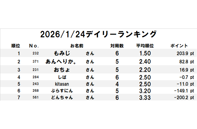 1/24デイリーランキング