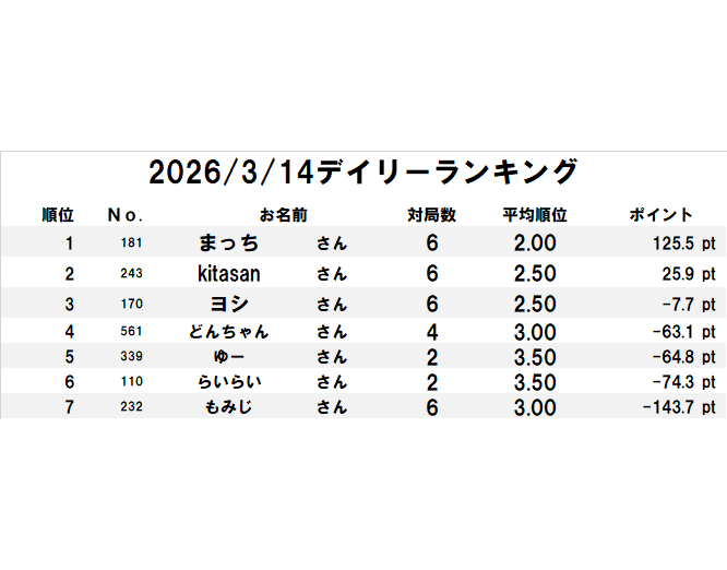 3/14デイリーランキング