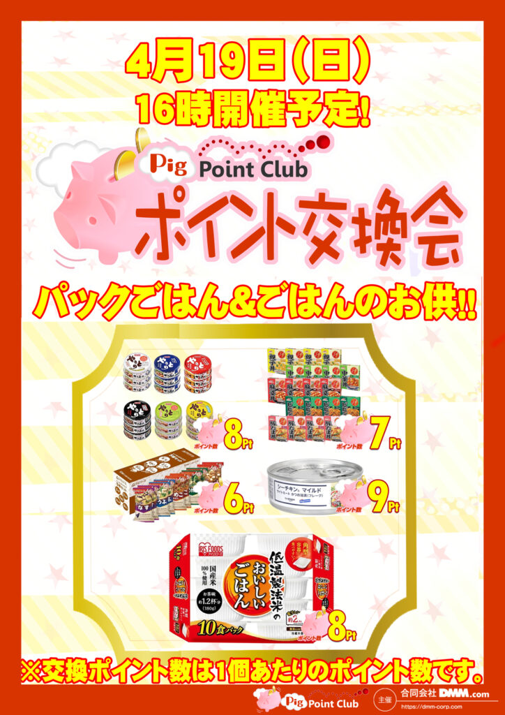 4月19日(日)★本日ポイント交換会開催予定★!