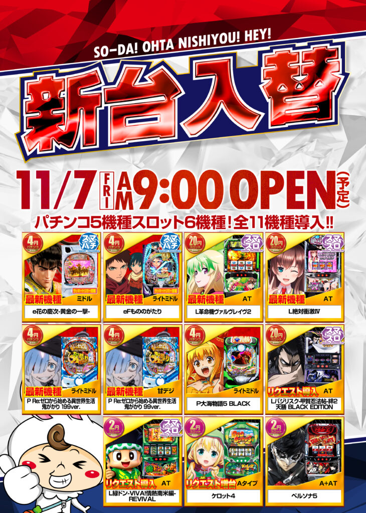 ★本日店休日★明日新台入替朝9時OPEN予定!