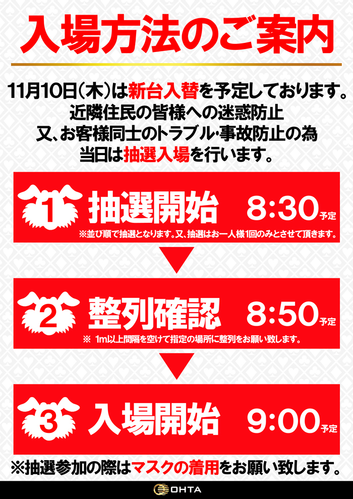 11月10日(木)【新台入替初日】あさ9:00フルオープン!