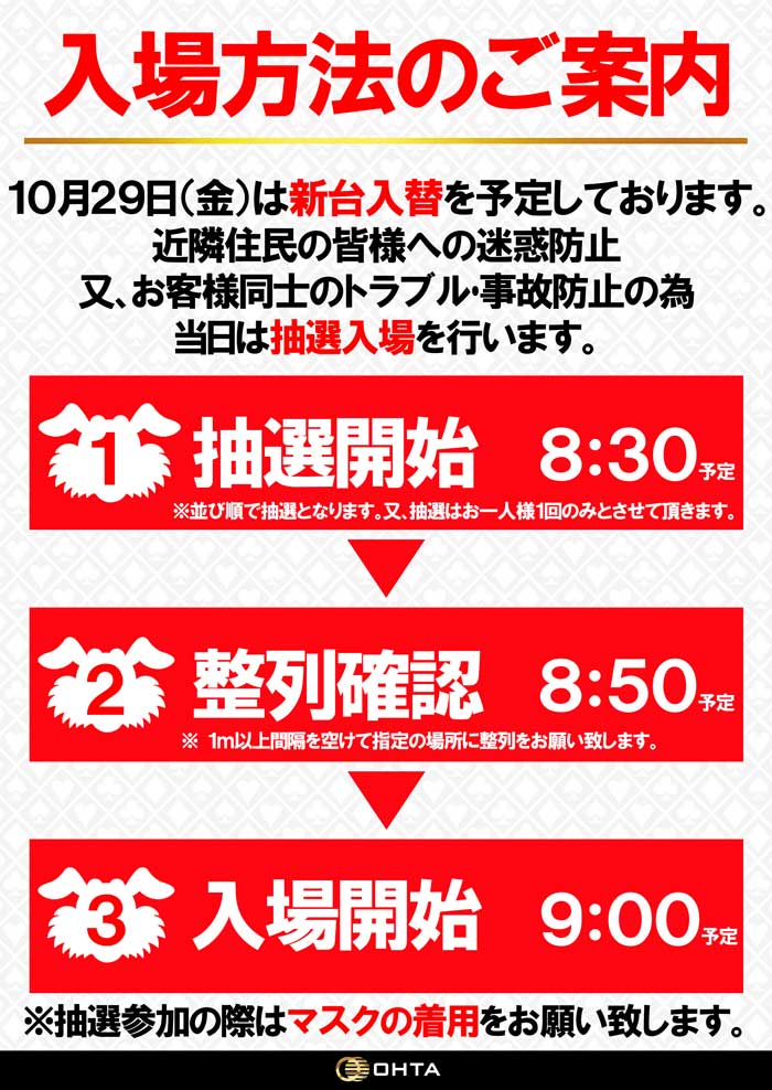 10月29日(金)【新台入替初日】あさ9:00オープン!