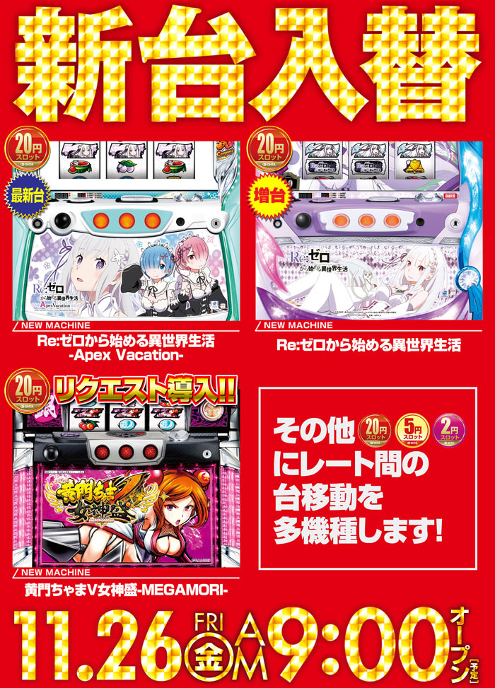 11月26日(木)【新台入替初日】あさ9:00オープン!!