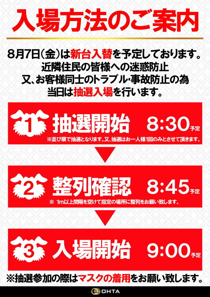 8月7日(土)【新台入替初日】あさ9時よりフルオープン!