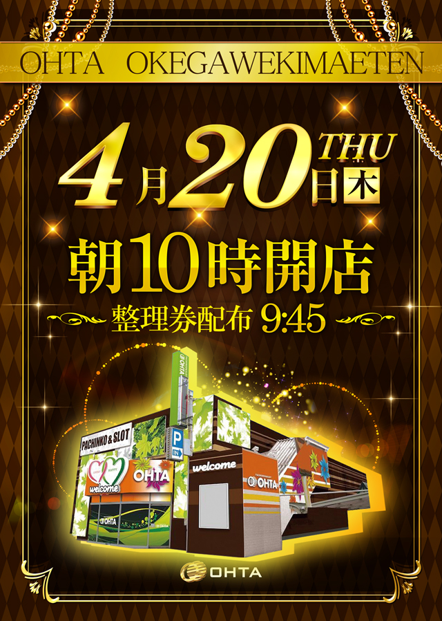 4月20日【木】あさ10時よりフルオープン!!入場整理券9:45配布開始!!