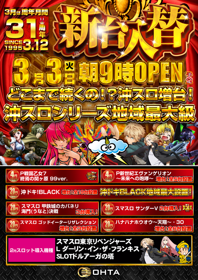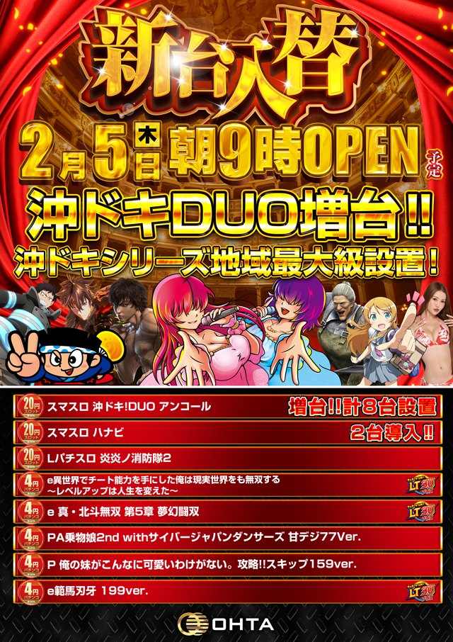 Previous 10月4日(水)☆新台入替☆あさ9時開店!!(予定)