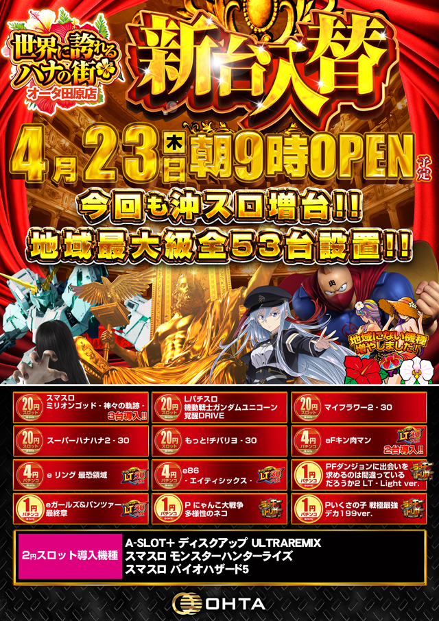 8月23日(水)☆新台入替☆あさ9時開店!!(予定)