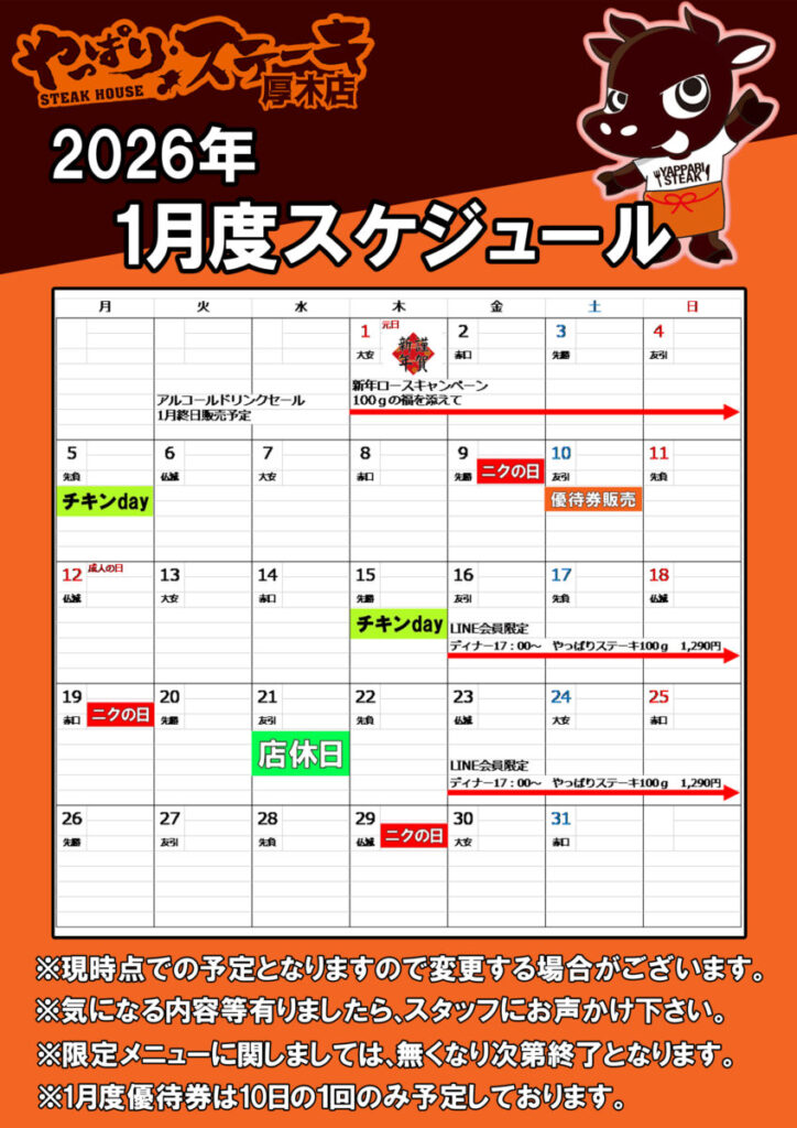 2026年度もやっぱりステーキ厚木店を宜しくお願いします。